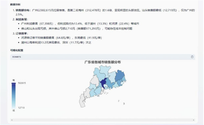 动态可视化:根据分析需求自动匹配图表(趋势图、热力图等),支持交互式探索;