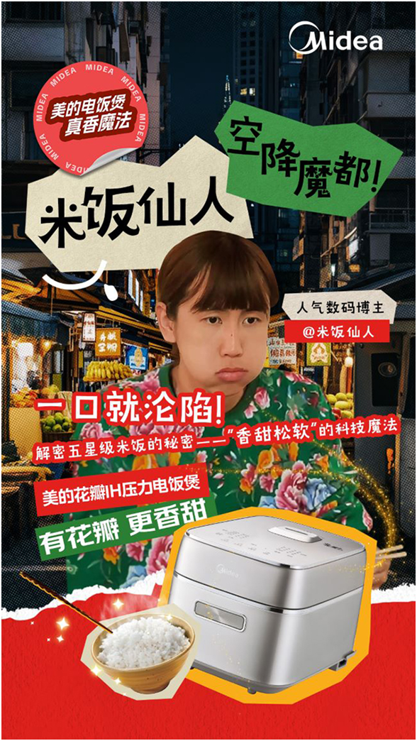 这个视频短片里,来自日本的网红“米饭仙人”怀里抱着一锅米饭,在上海的街头里邀请路人共进午餐。值得一提的是,米饭仙人怀中抱着的美的花瓣IH电饭煲不时被路人认出。“米饭仙人”认真地对粉丝说,“好不容易来中国了,必须用中国五常大米配中国电饭煲。”