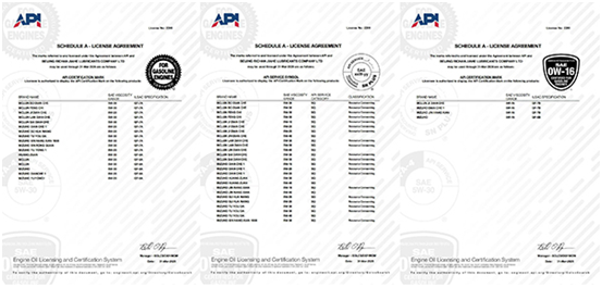 2025年03月31日GF-7标准和SQ(含燃油经济性SQ)标准正式生效,嘉禾兴产润滑油公司MIZUHO和迈卡轮品牌的SQ(含燃油经济性SQ)和GF-7机油在第一时间就获得了美国石油学会颁发的认证证书,这标志着嘉禾兴产润滑油的技术水平和品质始终处于国际先进水平。