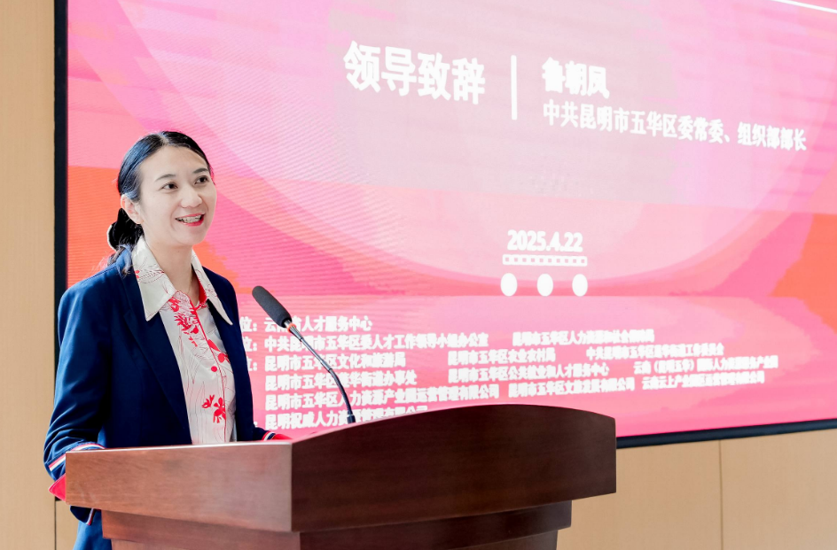参会领导上台发言,昆明市五华区委常委、组织部部长鲁朝凤发言表示,在这春花烂漫、咖啡飘香的美好时节,怀着对云南咖啡产业的无限热忱与期待,齐聚于此,共同参与“云咖人才培育暨咖啡文化产业创新提升”主题交流活动。鲁朝凤强调五华区高度重视咖啡产业人才的培养和储备,通过人才储备以及技能培训、技能竞赛等形式,储备了一批优质的咖啡行业人才,为云南咖啡产业的持续发展提供了坚实的人才支撑。本次“云咖人才培育暨咖啡文化产业创新提升”主题交流活动,在五华区人力资源服务产业园搭建了一个宝贵的交流平台。未来在五华区人力资源产业园,将有系列精彩活动呈现。希望通过交流活动,可以与国内外咖啡产业领域的专家学者、企业家和从业者们共同探讨云咖人才培育的新路径,分享咖啡文化产业创新提升的新思路,能够进一步凝聚共识,汇聚力量,为五华区乃至云南咖啡产业的人才培育和产业发展注入新的活力。