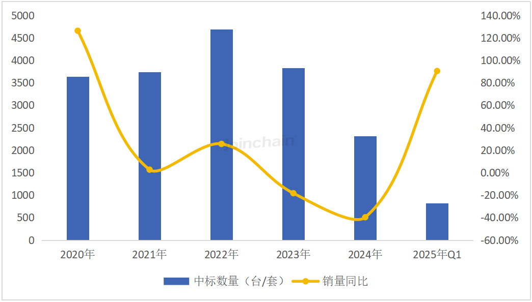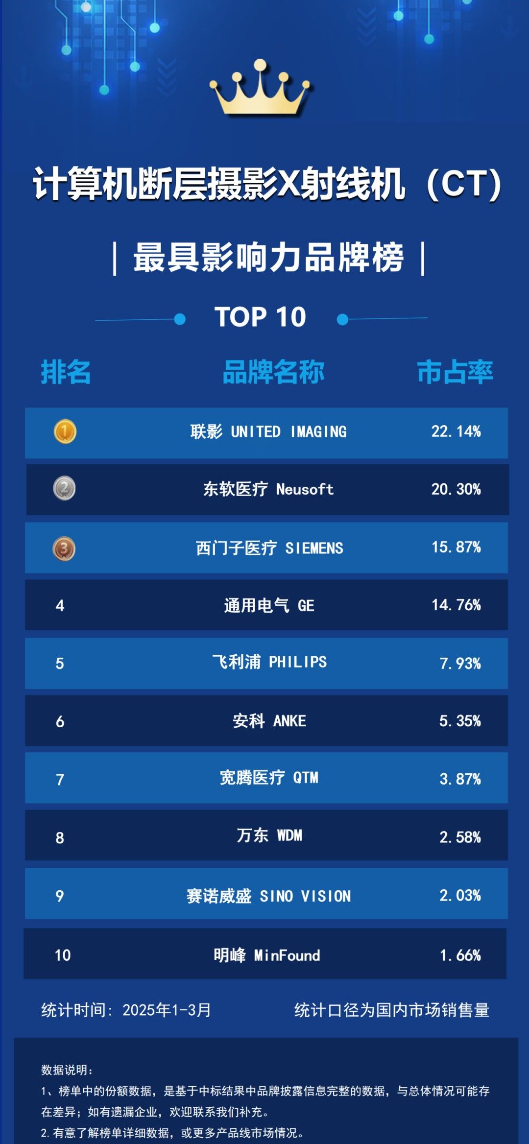 据众成数科测算,受益于“设备更新”及“县域医共体建设”双政策的驱动,2025年第一季度CT市场规模迎来新一轮爆发,销量及销额均同比增长超90%。