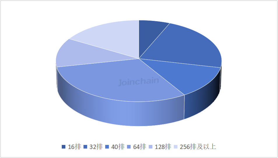细分到不同排数CT的市场表现可以明显看到,64排及以下CT仍为我国主要采购的CT类型,占比超70%。128排CT采购占比约为11.66%,256排CT采购占比约为16.63%。