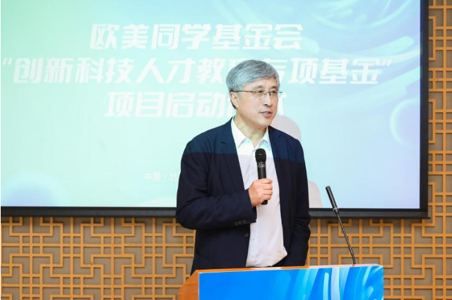 随后,在北大之友报告厅举行项目启动仪式。欧美同学基金会理事长李军指出,欧美同学基金会始终致力于通过多元化、国际化、专业化的人才培养公益项目,构建覆盖基础教育到高等教育的立体化人才支持网络,以人才链赋能产业链,促进人才与地方产业协同发展。此次与北京大学科维理所携手,标志基金会创新人才培养进入“学科交叉、产教融合”新阶段,未来将践行国家战略、整合资源、传播价值,助力科技强国建设。