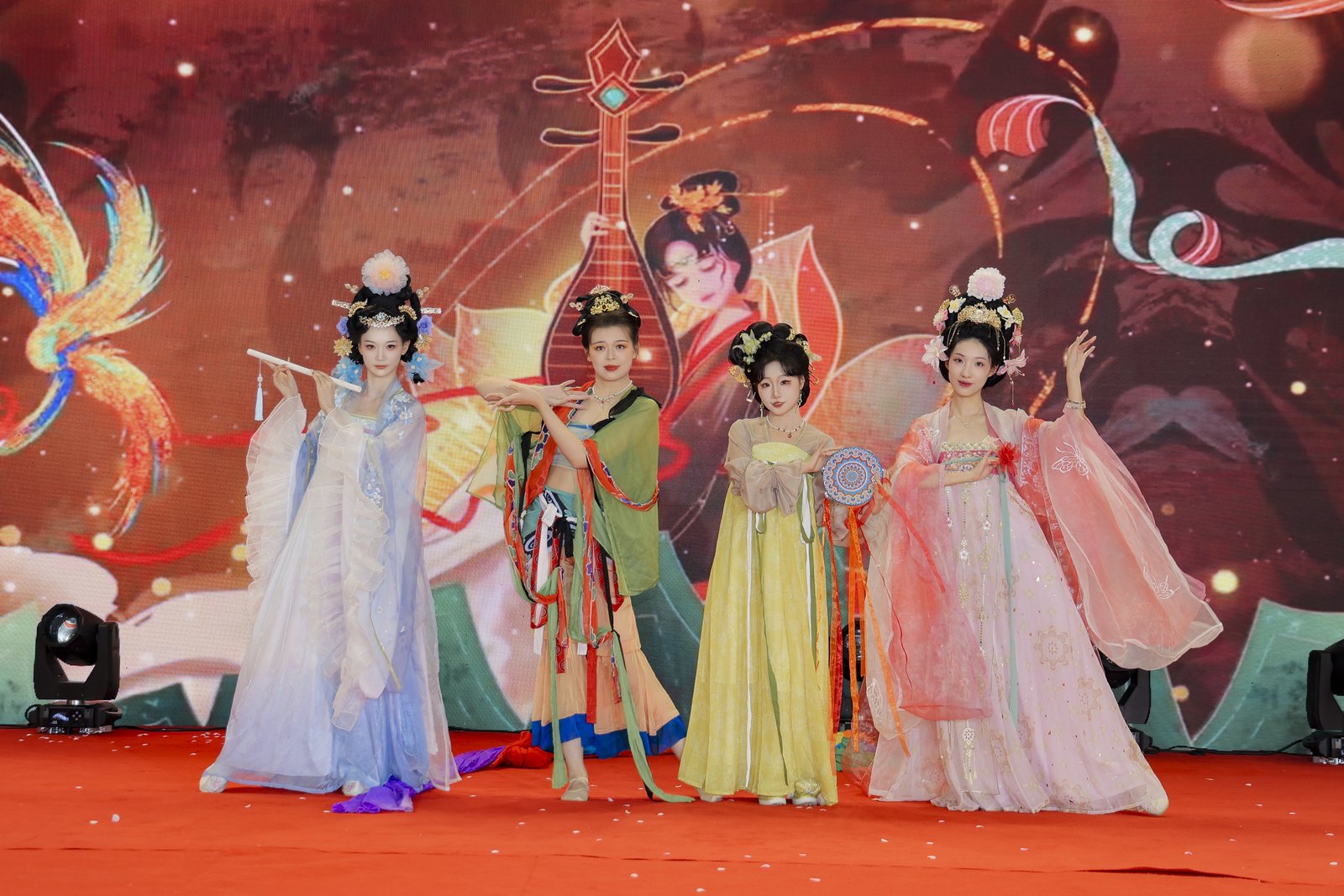 启动仪式上,陕北民歌的质朴嘹亮与秦腔戏曲的高亢激越,让现场观众在音乐中领略西北大地的豪迈气概。随后,"中国古代四大美女表演秀"以沉浸式舞台剧形式,生动还原西施、王昭君、貂蝉、杨玉环的经典形象,赢得观众阵阵掌声。全年龄段汉服秀通过不同年龄模特的演绎,展现了从孩童到长者的华夏服饰变迁,诠释了"衣冠载道"的文化传承。