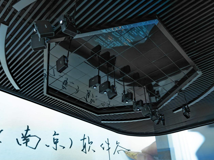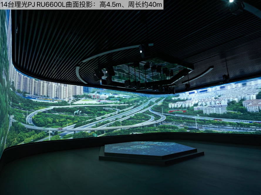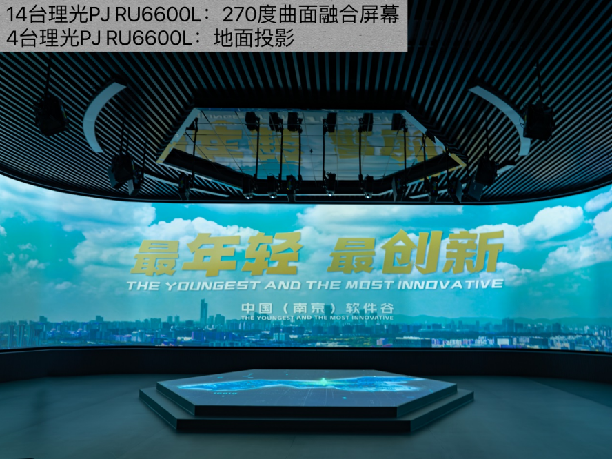 在中国(南京)软件谷企业展厅,18台理光PJ RU6600L激光工程投影机联袂演绎着南京软件产业的发展史。其中,14台 PJ RU6600L构建出 270°曲面融合屏,配合4台PJ RU6600L地面投影形成的动态光影矩阵,构建出三维立体的交互式空间,将南京深厚的数字底蕴,化作触手可及、鲜活灵动的智慧影像,带观众穿梭于科技与艺术交织的奇妙世界。