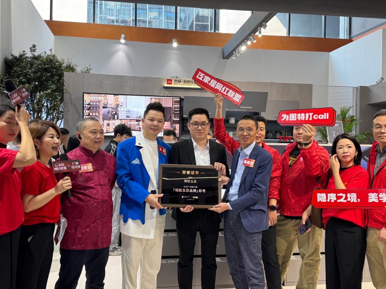 展会不仅是展示的窗口,更是行业价值得到确认的舞台。图特五金凭借其创新产品与系统化能力,在展会期间荣膺由广州设计周与泛家居网红联盟联合授予的“领航生态品牌”称号,以表彰图特五金在推动行业创新生态中的卓越贡献与领导力。
