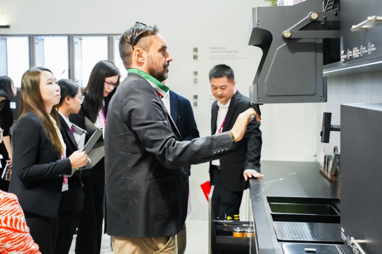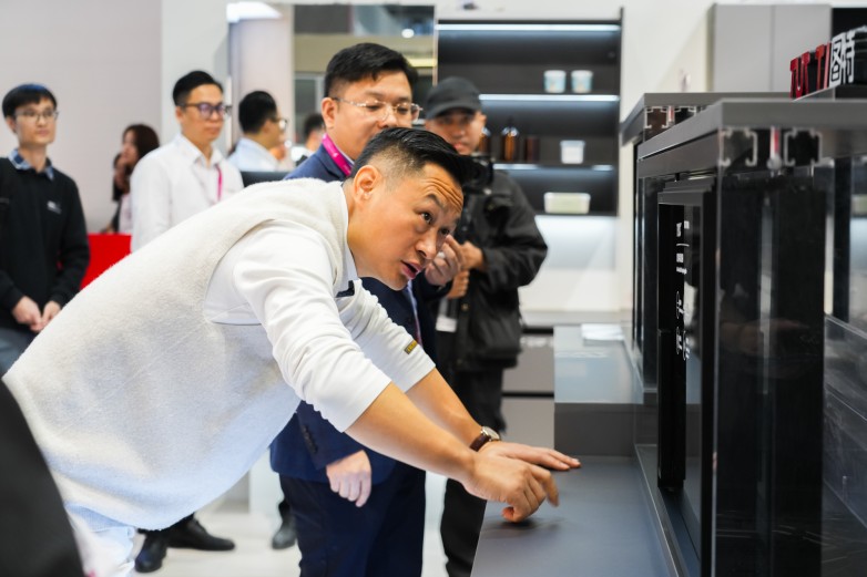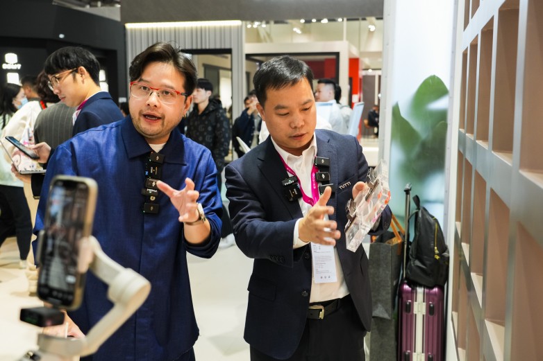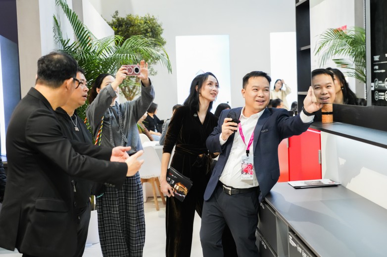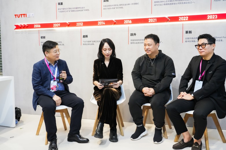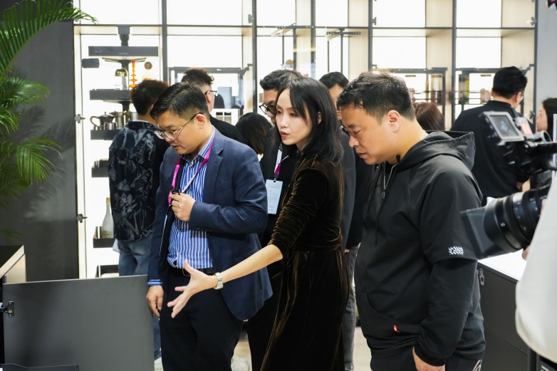 优居新闻全国总编黄小容携手香港环亚联合设计创始人杨志伟亲临展位,与图特五金首席设计师、韩国工业设计教授金在埙从媒体与设计大师的双重视角,直播解读新品背后的美学哲学。